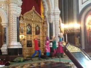 Акция в поддержку группы Pussy Riot натолкнулась на православных хоругвеносцев, дежуривших перед входом на территорию храма Христа Спасителя. Бородатые православные активисты с грозным видом преградили путь оппозиционерам, которые Читать далее